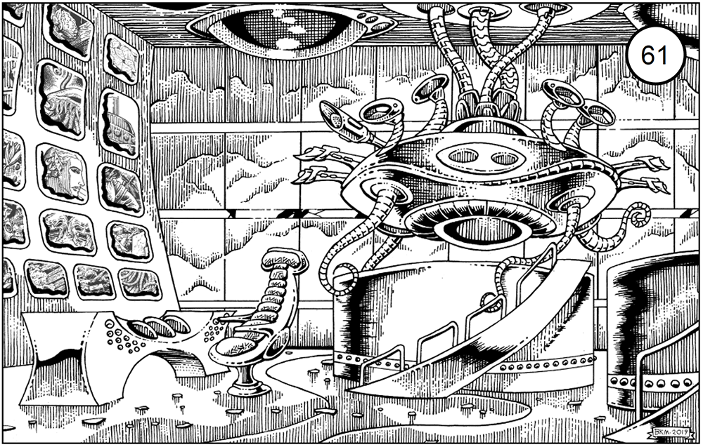 [12] Patrick Stuart and Scrap Princess are probably the apotheosis of this style, with Scrap's art style as seen in Veins of the Earth and Deep Carbon Observatory often parodied by the more traditional OSR. The image given from Veins of the Earth is a Scrap Princess piece.